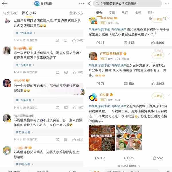海底捞自进入大众网络视野,便是主打服务的火锅连锁店,对于必须加锅底这一行为,很多人表示不赞同,认为海底捞不该如此“小气”,但也有网友表示赞同:这次我支持海底捞”。作为企业,维护自身利益,要求必须加一个锅底的做法无可厚非。近年来,受疫情和其它因素的影响,海底捞从原来的大火到面临净亏减少门店规模,到规定不允许自带菜品,再到如今要求必须点至少一个锅底,可谓是大起大落。