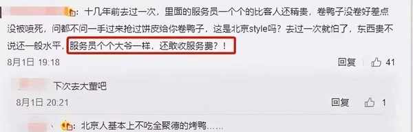 不仅如此,全聚德一个国企,还学起了欧洲餐厅收服务费的行为,然而每桌10%的服务费并未让顾客感受到“物有所值”。