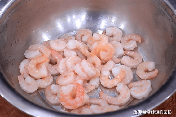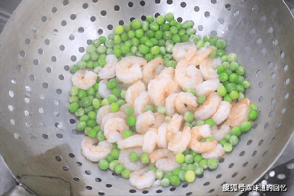 烧半锅开水,放入豌豆,淋入一点植物油锁住营养,汆煮1分钟左右,豌豆断生以后放入虾仁继续煮20秒钟,倒出来用清水冲洗过凉,虾仁不能久煮,不然鲜味容易流失,吃着不够嫩。