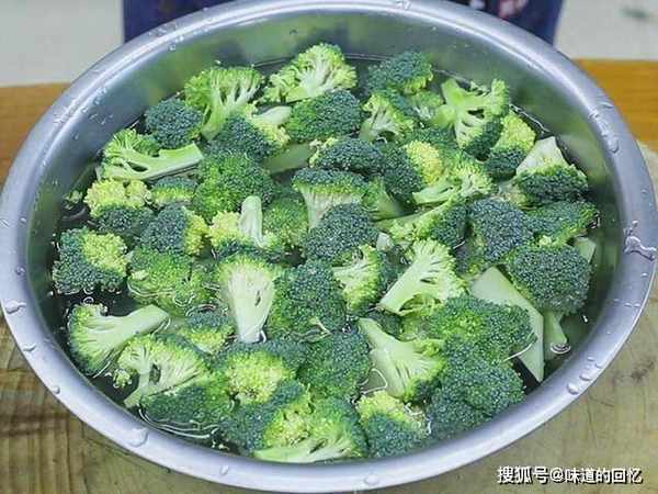 准备两朵西蓝花,沿着根茎拆下来,把比较大的花切成小朵,洗的时候撒入一些食盐,再加水浸泡几分钟,有利于充分去除杂质和灰尘,泡好以后把西蓝花洗干净,捞出来备用。