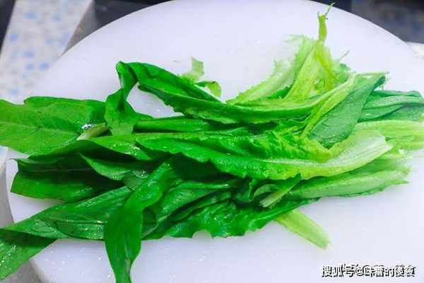 3.准备洗净的莴笋叶一把切成段,菜的种类不受限制,根据自身口味选择。