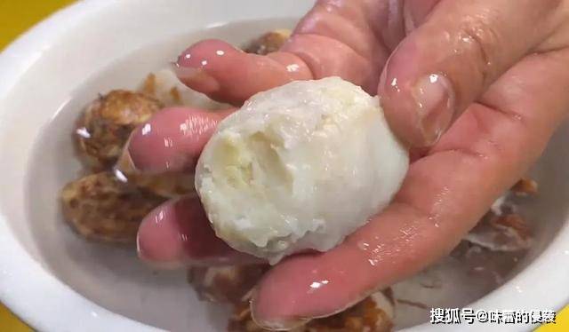 4.芋头蒸熟后取出,倒入冷水中过凉,不烫手后全部剥去外皮。