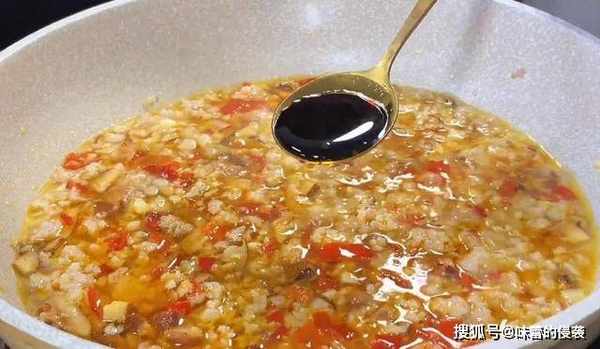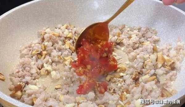 7.加入2勺剁椒,翻炒均匀,香味瞬间就上来了,不喜欢吃辣的也可以不放。
