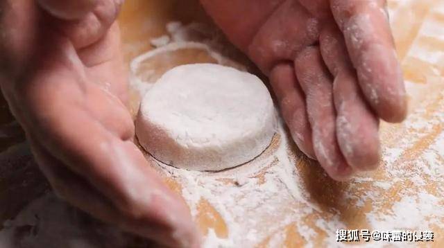 6.用手按扁,再用双手团成这样一个小饼的形状。