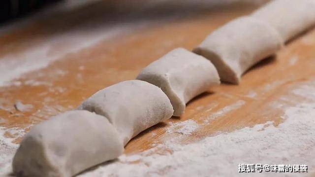 5.上手揉成面团,再放案板上揉搓成长条,切成均等大小的剂子。