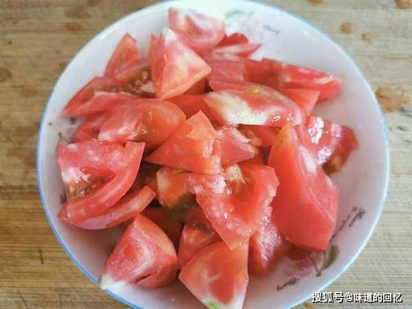 1、首先我们准备三个漂亮的西红柿,把它们清洗干净,之后切掉把,再切成块状,装入盘子中。