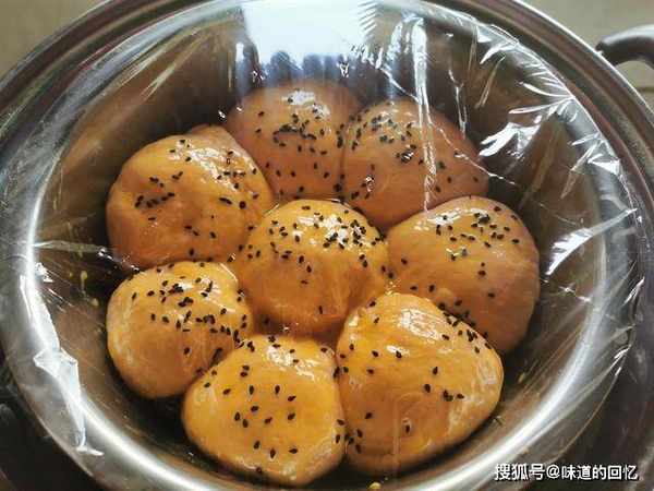 9、然后拿出一个干净的盆,里边刷油,把一个个做好的圆面团放进去,摆摆好,盖上保鲜膜再次醒发20分钟。