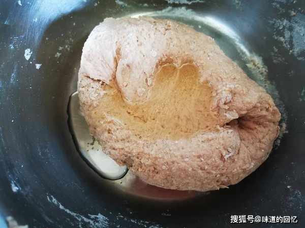 4、稍微揉成团之后,我们再倒入10克的食用油,继续揉,把油全部揉进面中,这样最后的成品口感会更好,尽量多揉一会哦,之后盖上保鲜膜,醒发到两倍大。