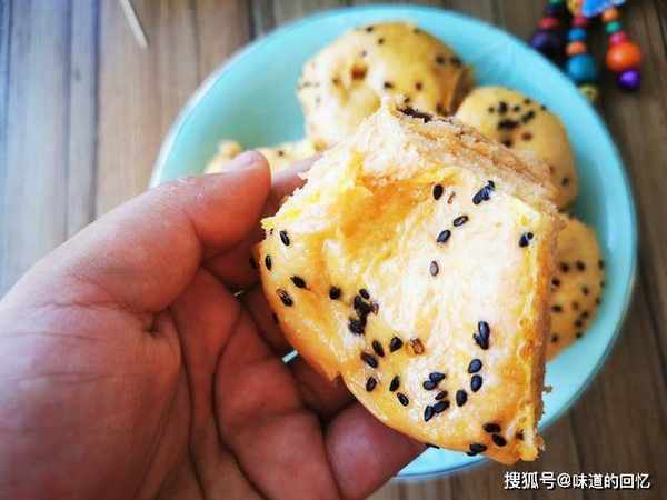 10、接着准备一个蛋黄搅散,用刷子均匀的刷上蛋黄液,再撒上一层黑芝麻提香。