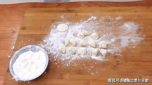 3、最后饺子捏上花边,煎制时候不容易开裂,也增加美感。