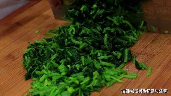把菠菜切成碎末备用。