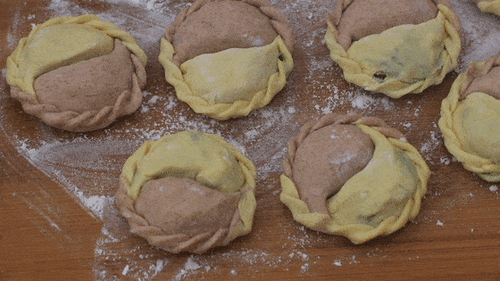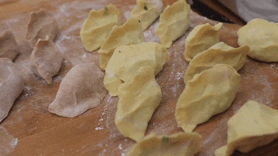造型美观的双色饺子就做好了。