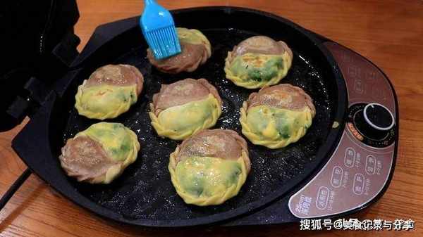 三分钟后打开锅盖,在饺子皮上刷上植物油,保留煎饺内部的水分。