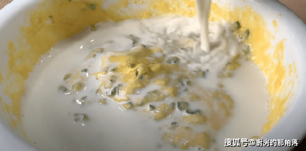 9.继续搅拌,全部食材混合搅拌均匀之后,就可以开始煎了。