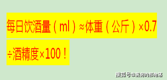 如果不知道一天该喝多少好,不妨在喝酒前,计算一下自己的最佳饮酒量,公式很简单,大家直接代入就可以算出来。