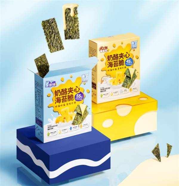 新品椰子味奶酪夹心海苔酥脆,也有含量相同的丹麦进口奶酪,但更多的是加入45%印尼进口椰子粉,给孩子带来新鲜椰汁般的口感,既美味又健康;并加入DHA藻油粉,配以高蛋白,符合夹心海苔脆营养价值高,用海藻糖取代蔗糖,更加关爱人的牙齿健康。