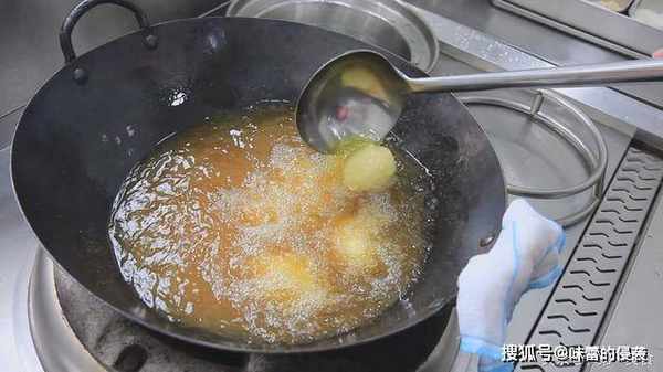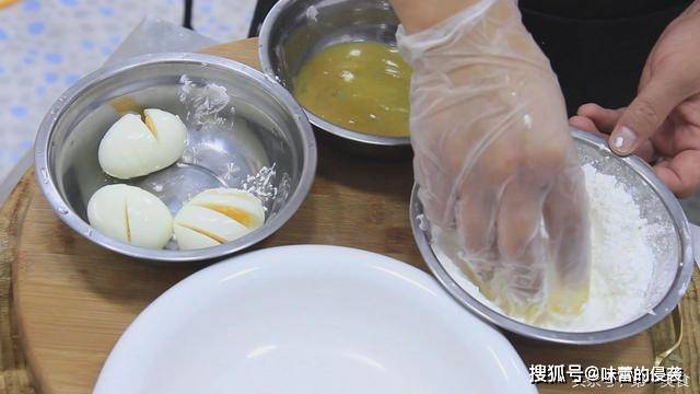 蘸上鸡蛋液,再裹上淀粉可以使鸡蛋炸得更加酥脆。