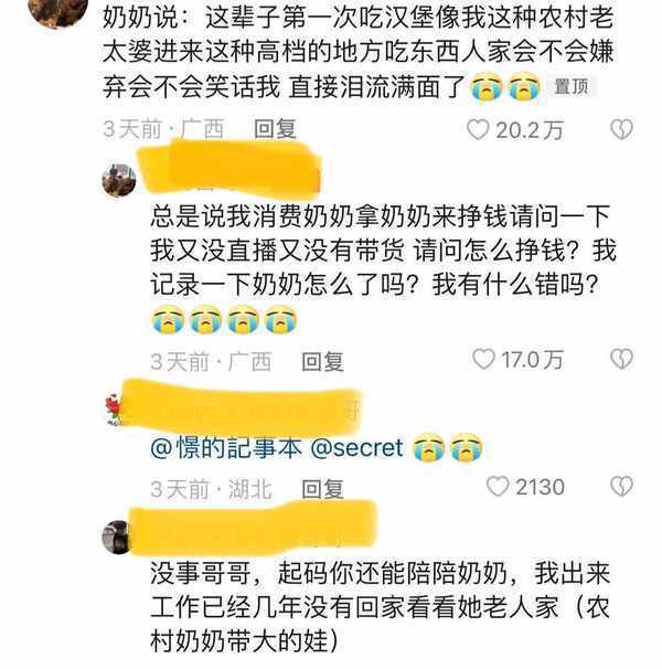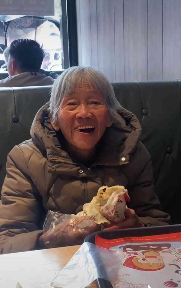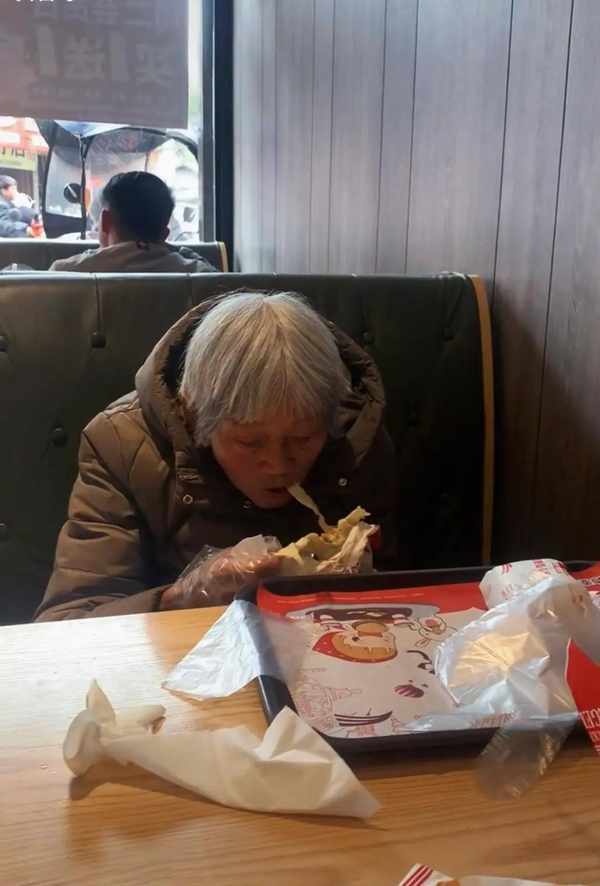 还有网友说,几十块的炸鸡,汉堡,饮料,有钱人以为的垃圾食品,却是老奶奶一辈子都没有尝过的美食。看着老奶奶羞涩地吃着汉堡,真的好心疼啊。