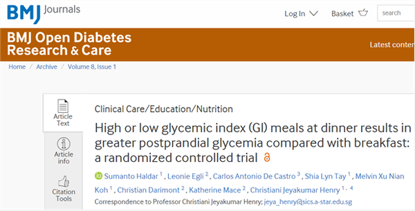 研究者徵集了平均年齡56.8±0.83歲的健康中老年志願者,單獨干預後對數據進行分析,得出結論:相比起早餐,晚餐對糖代謝的不利影響更明顯,且不管是高GI飲食還是低GI飲食,< strong>在早餐時的差异可能不太明顯。