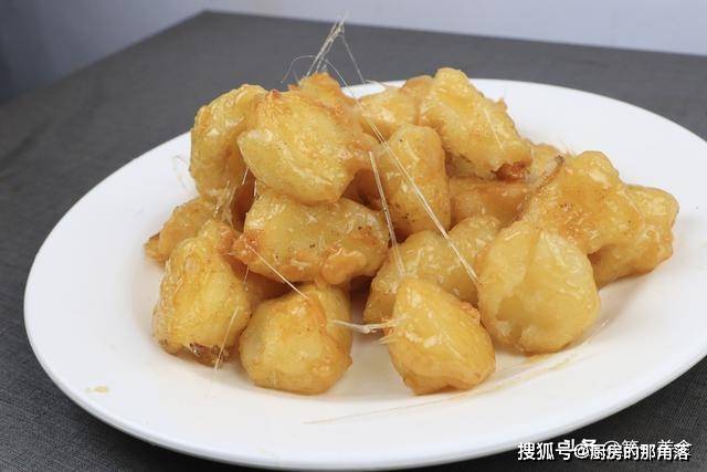 最后放入炸好的苹果,快速翻炒让苹果均匀裹满糖汁即可出锅。