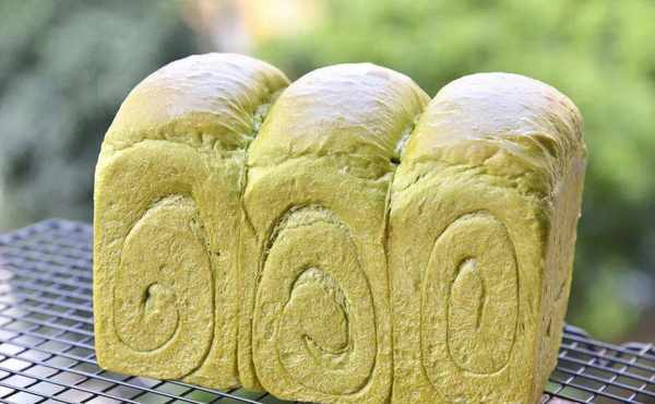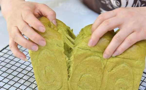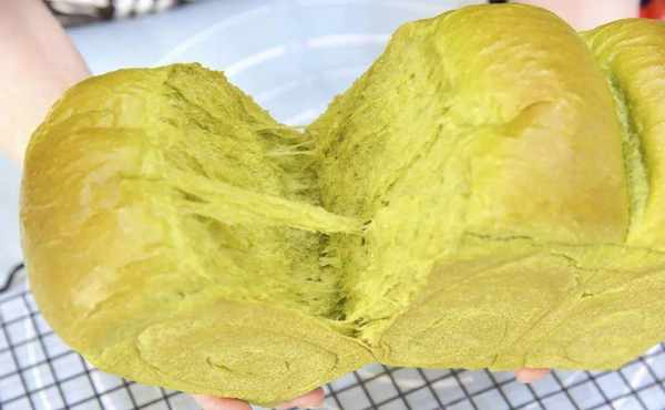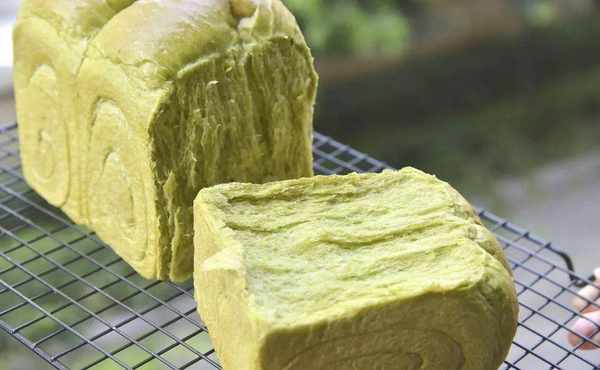 绿意昂扬满富生机,是今天这款吐司的主基调;表皮是淡淡的金黄,撕开就能见到鲜嫩的绿色;本是简单的白吐司,因为加入了斑斓粉而缤纷出彩,斑斓粉颜色鲜艳翠绿,加入到面团中会让做好的面包有一股特别的植物清香,所以今天的吐司不仅看起来是满富生机的,吃起来还有满口植物的淡香。