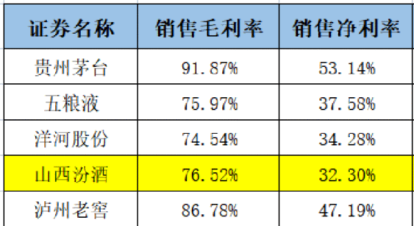 也就是说相比山西汾酒,“老五”泸州老窖用更少的营收却获得了更高的利润。