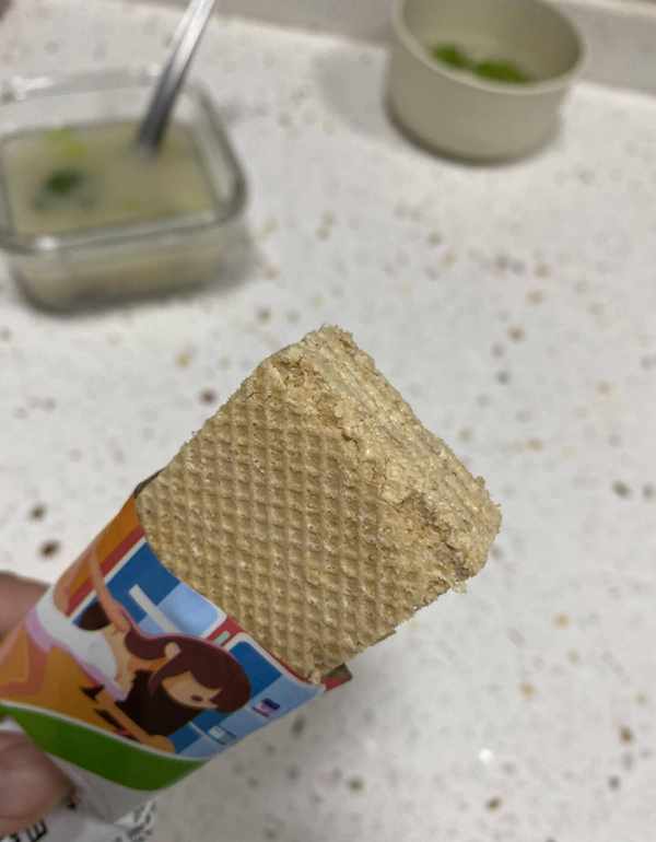 ▲这酥脆的口感,说是好吃的威化我信了。好吃的停不下来,也不贵。它们比植物品牌便宜不了多少。我的一块钱,他的五块钱,哈哈哈。