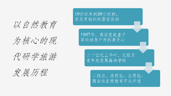 因此,在以地球环境为背景的自然教育中,研学旅游就具有了最基础和最核心的地位。尤其是在环境问题变得越来越重要的今天,通过研学旅游,将会在很大程度上满足人们的求知、教育、探索自然等方面的需求,并促进人与自然的和谐相处与可持续发展。