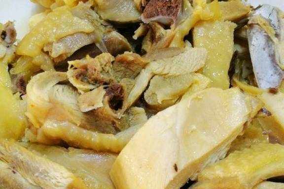 客家咸鸡是客家人的另一道受欢迎程度达到满星的硬菜。据说,以前物质匮乏时,客家人杀鸡不舍得一次吃完,为了一次只能吃一点,同时为了可以保存时间长一点,特意把鸡肉做的非常咸,这样大家吃的时候只要吃上一小块,就会感觉太咸,吃不了太多肉。后来大家发现将咸味调整到适当程度时肉质紧实,香味更浓,于是客家咸鸡成为了一道名菜,大人小孩都非常喜爱它!
