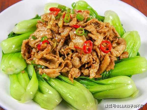 一把上海青用刀切开冲洗干净;一块猪肉切成片,加入食盐、胡椒粉、料酒、老抽搅拌均匀,加入少许植物油搅匀锁住肉片的水分,口感更滑嫩;青红线椒切成圈;大葱白也切成碎末,大蒜切成蒜沫,3-5个小米辣切成两瓣和葱蒜放在一起。