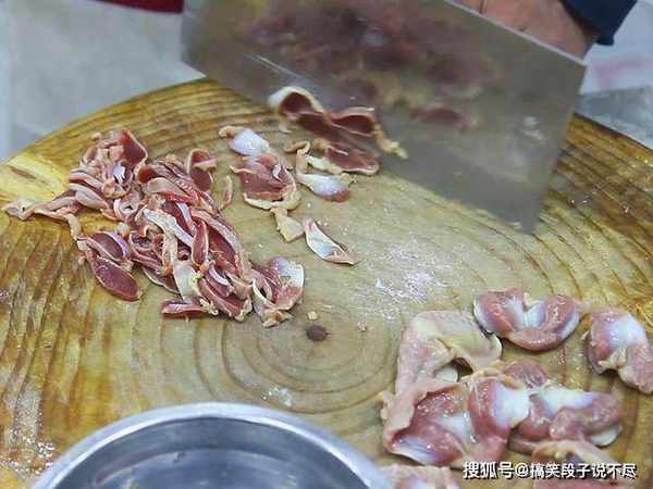 锅里倒入清水和料酒,鸡胗凉水下锅,水开后焯水10秒钟,捞出来冲凉控水。