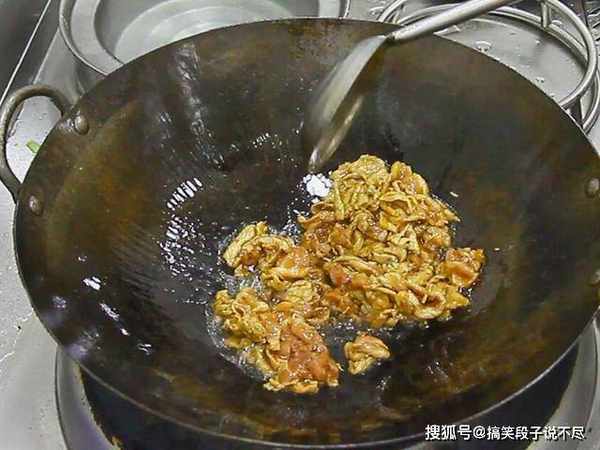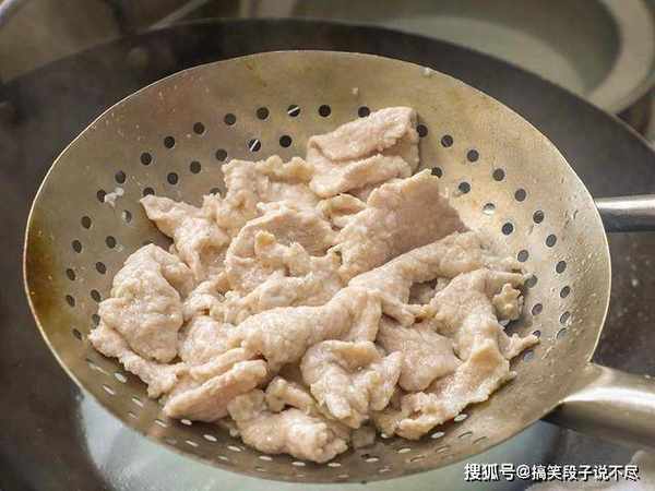 锅里烧油,开中火等到油面微微冒烟时,倒入肉片快速炒散,肉片变色后翻炒90秒左右,倒出来控油。