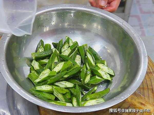 起锅烧水,水烧开把秋葵倒进去焯水30秒,倒出过凉更加爽脆。