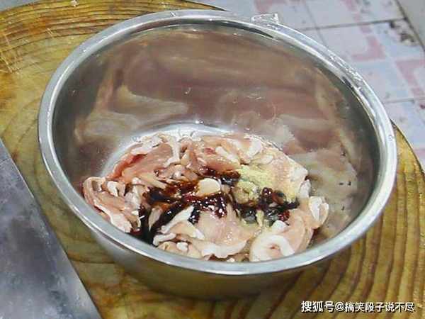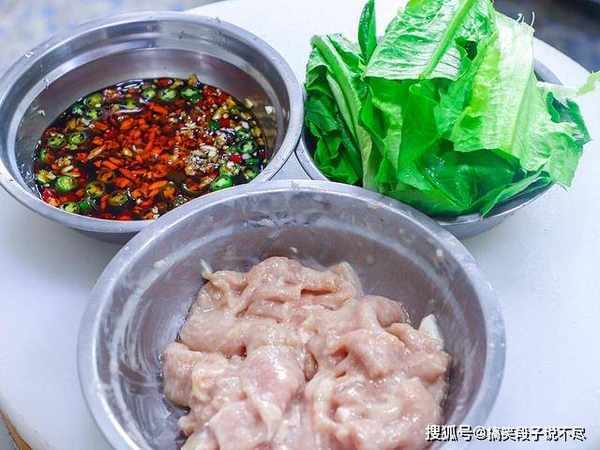 猪里脊500克切成薄片,加入食盐2克、胡椒粉1克、料酒10克、一个蛋清、少许水淀粉抓拌至肉片全都裹上淀粉;一把莴笋叶切成段,菜的种类不受限制,根据自身口味选择。