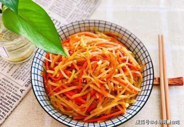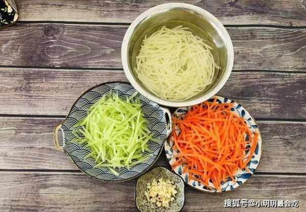 这道菜的名字叫做凉拌三丝,一听就回到了没有肉,可是没有肉没有关系,只要能够吃就行了,给大家五秒钟猜猜这凉拌三丝是哪三丝,好了揭晓答案,这三丝就是土豆丝,莴笋丝以及胡萝卜丝,那么这道凉三丝除了需要准备这些材料以外还需要准备一些什么呢?还需要住别葱姜蒜,盐,生抽,白糖,醋,油,以及油辣子等。这些东西都是我们比较常用的凉拌调味,小伙伴们感兴趣可以记一下。