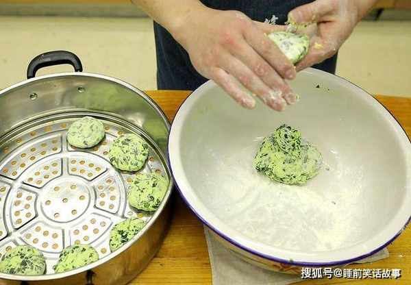5.锅内加水,放上篦子铺上蒸布,开火把做好的菠菜卷放入锅中蒸15分钟,菠菜卷冷水下锅,有二次发酵的机会,蒸出来更加蓬松,另外菠菜卷不要放得太密集避免粘连。