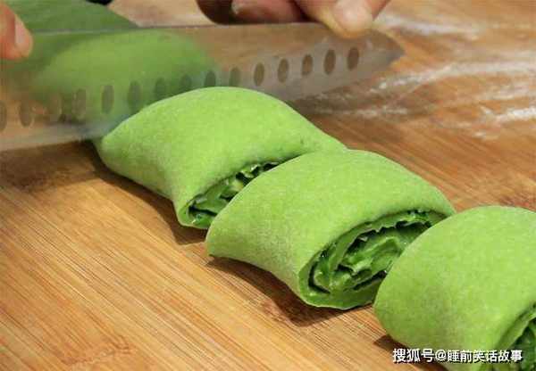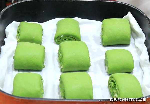 6.15分钟以后关火,再焖2分钟让菠菜卷慢慢冷却,这样菠菜卷出锅后更加暄软,把菠菜卷摆放在盘中就能食用了,美味即成。
