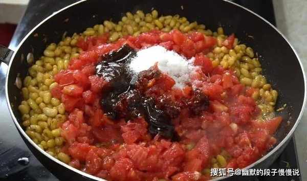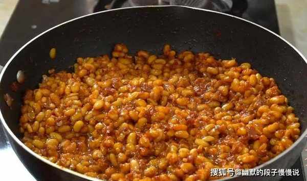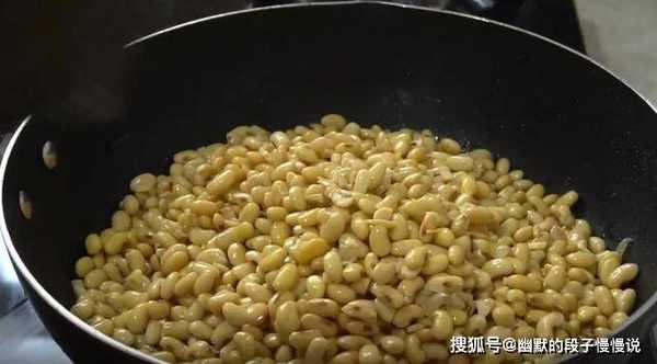 10、一直翻炒15分钟,炒到黄豆软化,混合各种酱料,这道酱黄豆就完成。