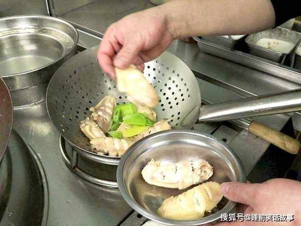 锅内烧水,淋入料酒,放入葱姜,加入食盐、味精增加底味。开大火熬煮几分钟,充分的熬出葱姜的香味。然后倒入鸡翅,开锅以后关火浸泡10分钟。让淡盐水慢慢深入到鸡翅里面,既能增加底味,还能使鸡翅的口感更加软滑。
