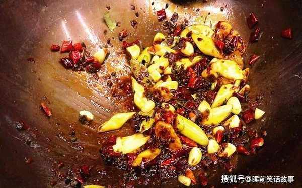 起锅烧油,倒入刚才准备好的香料,开小火,慢慢炒出香辣味。