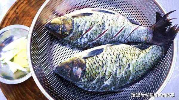 热锅凉油,吸干鱼身上的水分后,把处理好的鲫鱼放锅里煎。