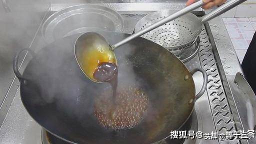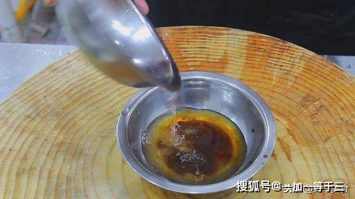把锅烧热,倒入调好的蘸酱,用勺子迅速的搅动,搅至汤汁起大泡,倒在小碗中。