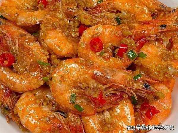 2、起锅烧油,油热后放入蒜末和小米辣翻炒出香味,加入少许白糖翻炒均匀,再放入鲜虾翻炒一会儿。