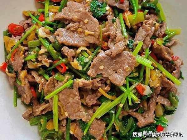 牛肉,香菜,小米辣,青线椒,泡椒,葱段,蒜片,姜丝。
