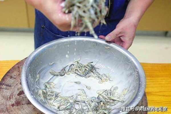 然后升高油温至五成热,放入河虾复炸一遍,吐吐油同时把虾炸酥,一直炸至金黄焦酥捞出来控油。