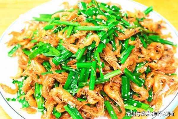 锅里留底油,放入韭菜段,加入食盐、鸡粉,大火快速翻炒至断生,然后倒入炸好的河虾继续翻匀,出锅前撒上白芝麻、美味即成。
