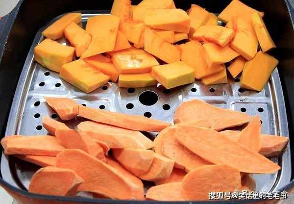 准备红薯一个,削去外皮的红薯,切成1厘米厚的块,不要切得太厚,薄一点可以加快蒸熟的时间,切好后取出电蒸锅通电加热,放上篦子,把红薯块倒进锅内蒸15分钟。