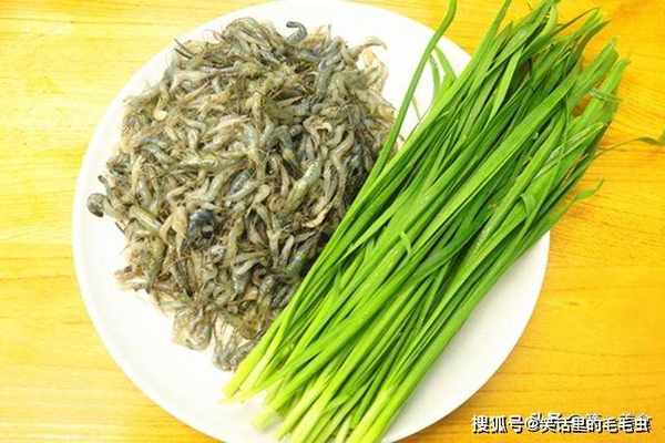 我们准备适量的鲜河虾和一把韭菜,把韭菜择洗干净切成段。
