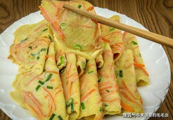 面糊全部定型,饼边缘变色时翻面,翻过来之后再烙10秒钟即可出锅,因为这个饼摊得非常薄,而且是盖上盖烙的,很容易就熟了,一道清香柔软的胡萝卜丝煎饼就做好了。
