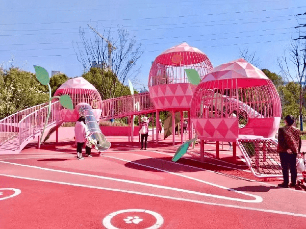 桃气堡儿童乐园总面积1800平方米,根据不同年龄段的游玩特点分为幼儿游乐区、大童游乐区和亲子活动区。其中,幼儿游乐区设有攀爬石/绳、跷跷板、游戏墙、滑滑梯等10余种设备;大童游乐区以高约14米的水蜜桃主题设备为主,并设置滑梯、天桥、爬网、吊桥等游乐设施;亲子活动区以组合秋千和传声筒为主。